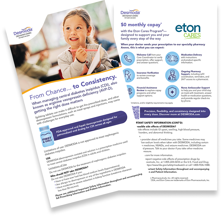 Once you prescribe DESMODA, your patients are automatically enrolled in the Eton Cares Program® and all the benefits that come with it